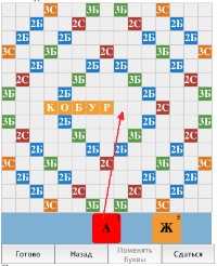 - Выложенное слово может создавать дополнительные слова с уже размещенными буквами